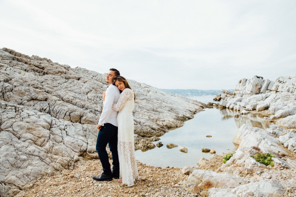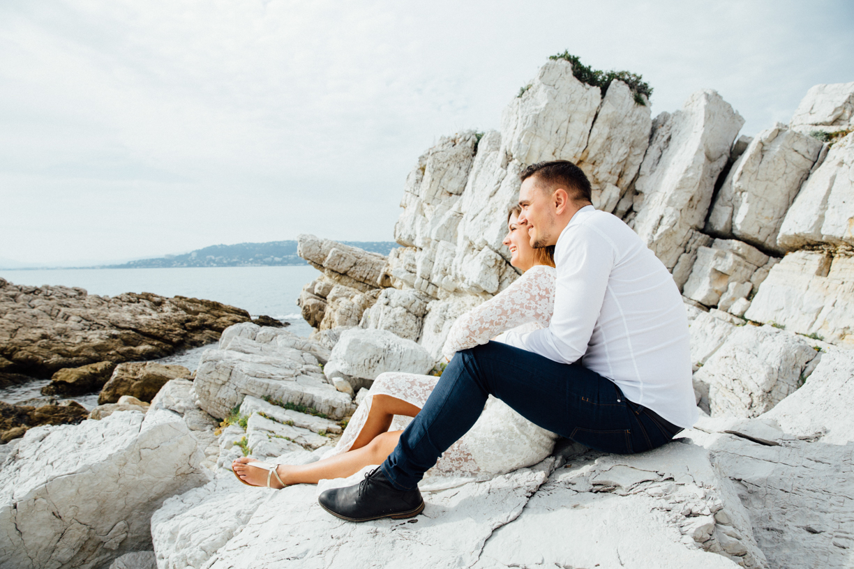 En attendant cet heureux événement, nous avons organisé une séance d’engagement au bord de l’eau, dans un spot que je ne connaissais pas à Antibes. J’adore découvrir de nouveaux endroits, et je dois dire que je n’ai pas du tout été déçue par ce petit havre de paix rocheux. Merci les amoureux pour la découverte ;)